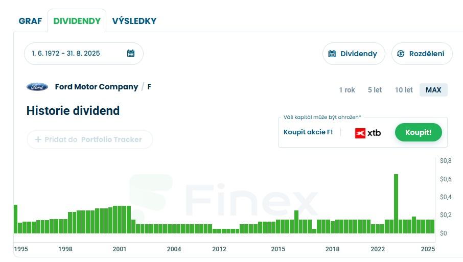 Ford vypláca pravidelnú dividendu a niekedy aj mimoriadne dividendy.
