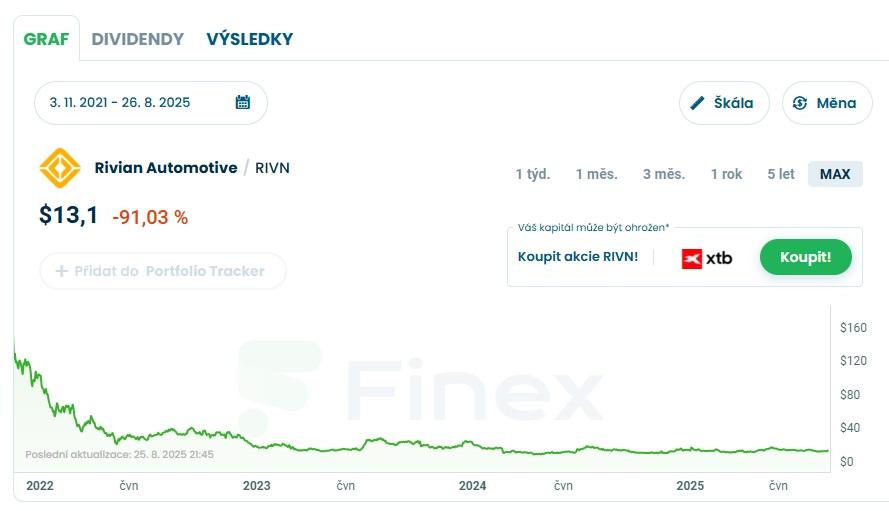 Graf akcie Rivian