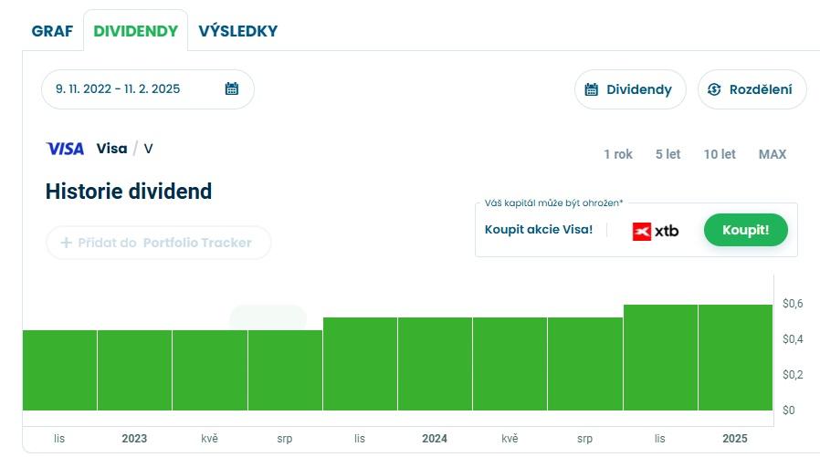 Visa patrí medzi najsilnejšie a najstabilnejšie spoločnosti v oblasti digitálnych platieb, s globálnou dominanciou, vysokými maržami a stabilným rastom podporeným prechodom od hotovosti k online platbám. Vďaka silnému cash-flow, pravidelnému zvyšovaniu dividendy a spätným odkupom akcií, predstavuje atraktívnu dlhodobú investíciu.