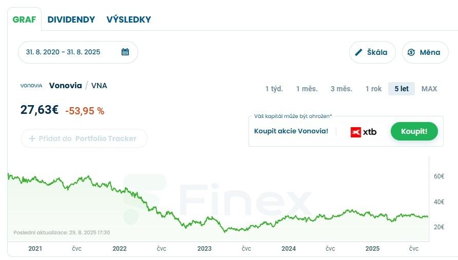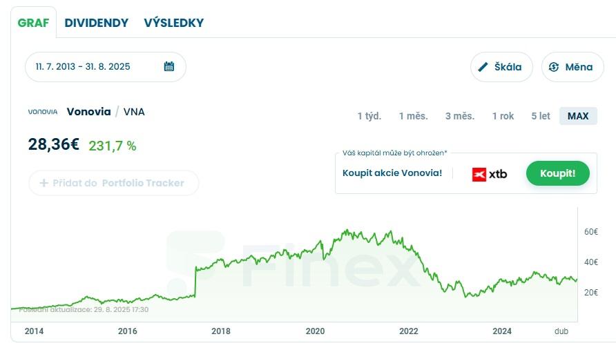 V posledných rokoch boli ceny akcií Vonovia ovplyvnené rastom úrokových sadzieb a reguláciou v sektore bývania, čo spôsobilo výkyvy v hodnote. Investori si ich však často vyberajú pre stabilný dividendový výnos a dlhodobý potenciál rastu hodnoty nehnuteľností.